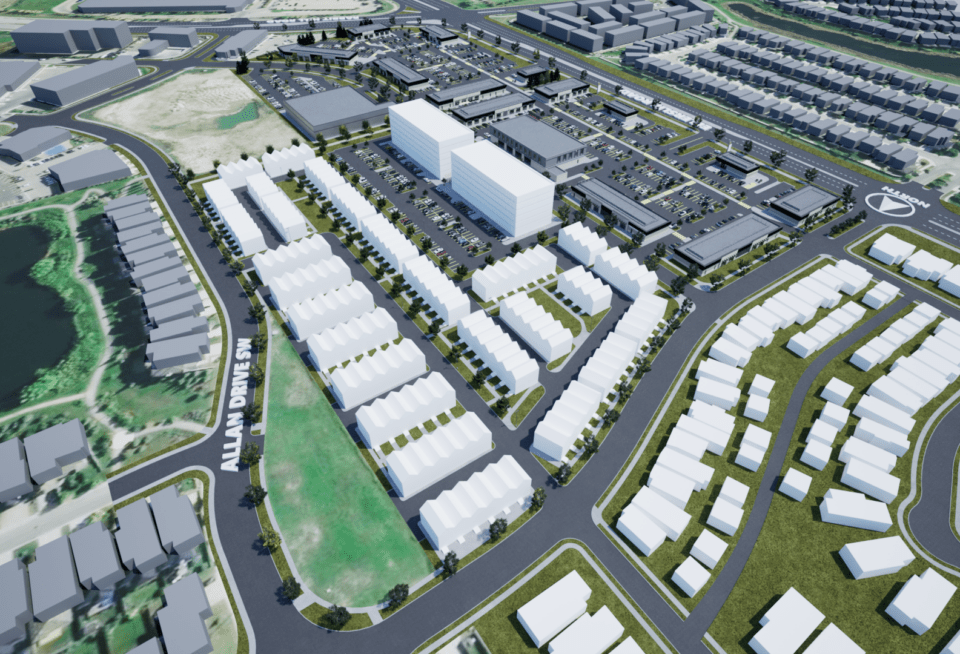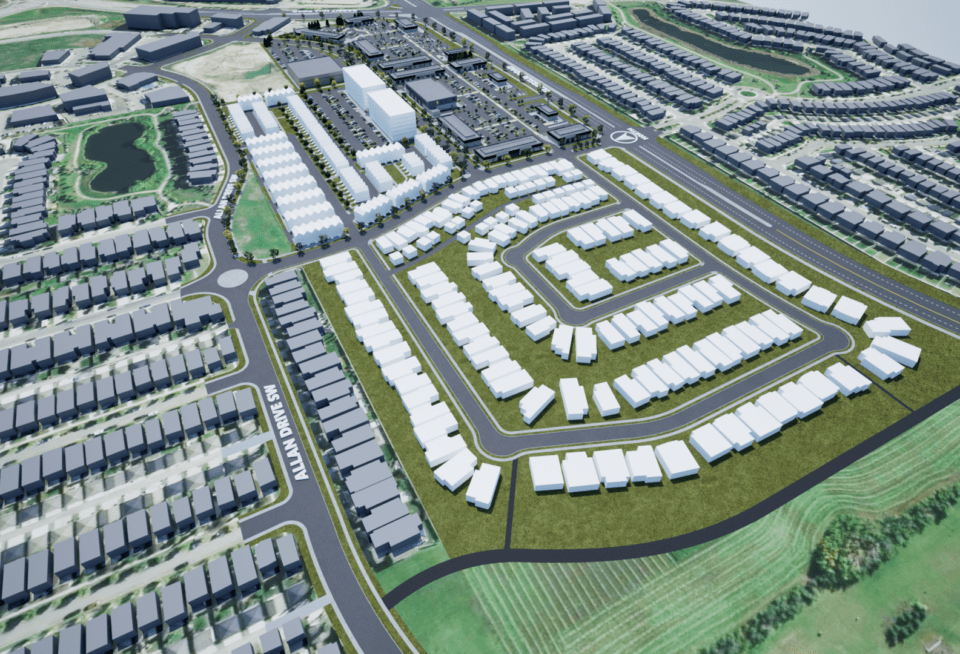 Medium-Density Residential: To meet the demand for housing in the southwest neighbourhoods, 6.12 acres of the site has been designated for medium-density (multi-family) residential development. This will consist of an optimized mix of townhomes and apartment buildings, creating an estimated 250+ new units in the area.